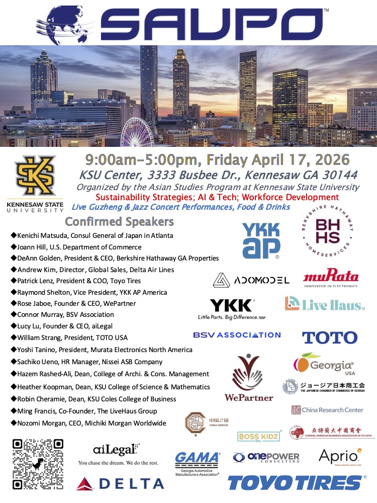 Organized by KSU’s Asian Studies Program, the Symposium on ASIA-USA Partnership Opportunities (SAUPO) is the largest Asia business conference in the USA since 2011.