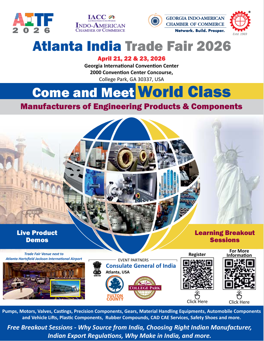 The Atlanta India Trade Fair 2026 is a premier business-to-business exhibition connecting global manufacturers with U.S. buyers, distributors, and industry leaders. Hosted at the Georgia International Convention Center, the event brings together companies across multiple industries to showcase engineering products, components, and manufacturing capabilities.