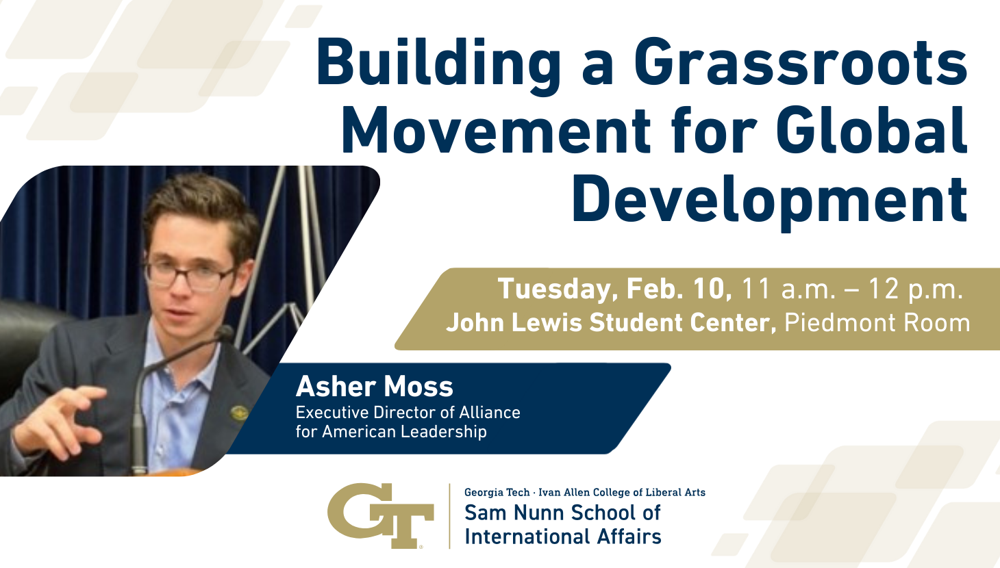 The Sam Nunn School invites you to a discussion with Asher Moss, executive director of the Alliance for American Leadership, on the future of U.S. foreign aid and how grassroots advocacy can strengthen Americaโs role in global development.