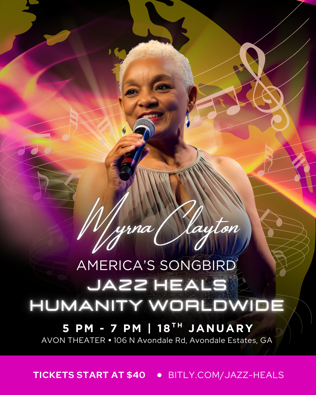 Myrna Clayton will debut her brand-new concert experience, Jazz Heals Humanity Worldwide, at the historic Avon Theatre in Avondale Estates.