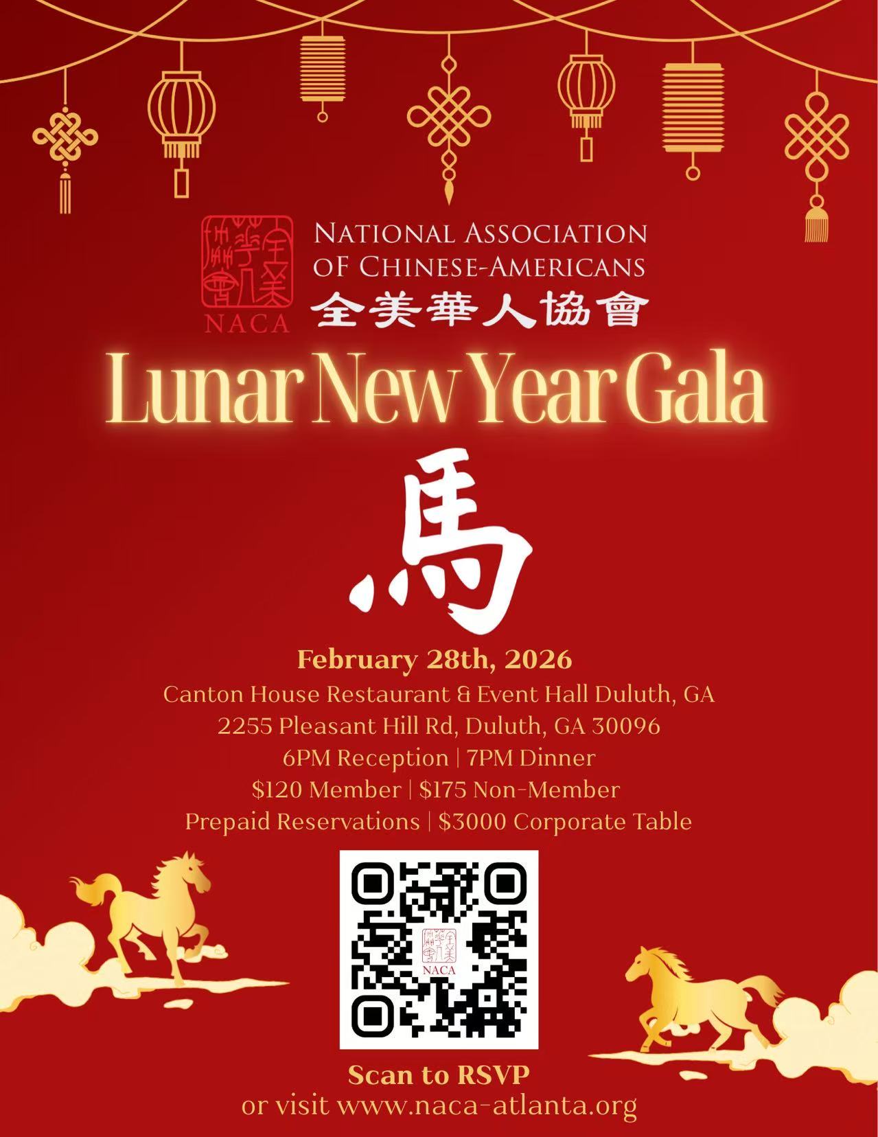The National Association of Chinese-Americans (NACA) invites you to its Lunar New Year Gala at Canton House Restaurant & Event Hall in Duluth, Georgia.