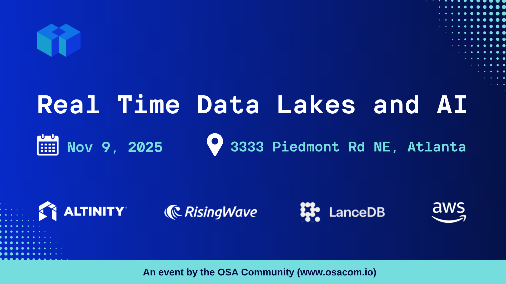 The Open Source Analytics Community is excited to bring an evening of insights and networking to Atlanta, featuring experts from Altinity, RisingWave, LanceDB, and AWS.