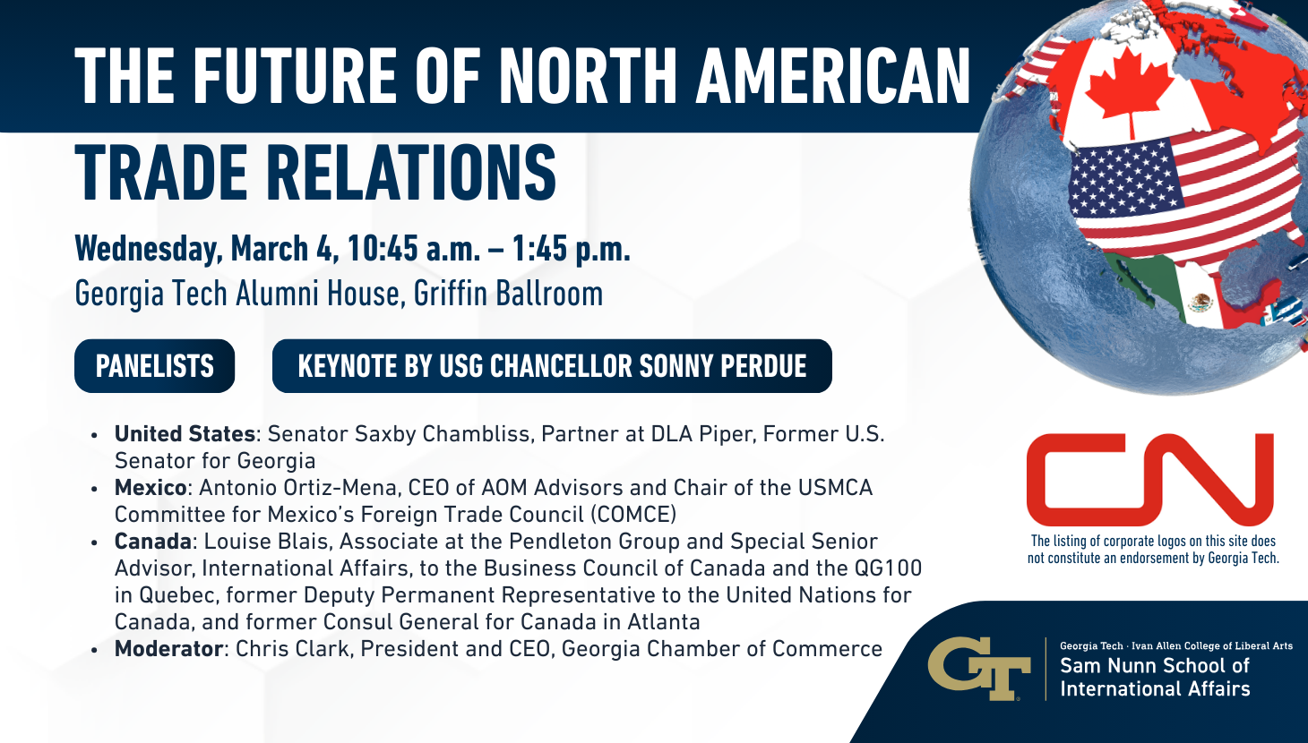 There will also be a panel discussion offering the national perspectives on the trade agreement and what the future of trade between the three nations may look like.