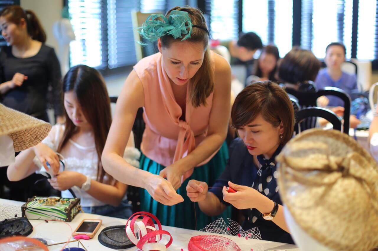 She found classes at the Wombourne School of Millinery in London. She got certified and began piling up supplies — hat forms, various materials like sinamay and wire — in a shipping container ahead of the impending move to China, where she had never traveled.