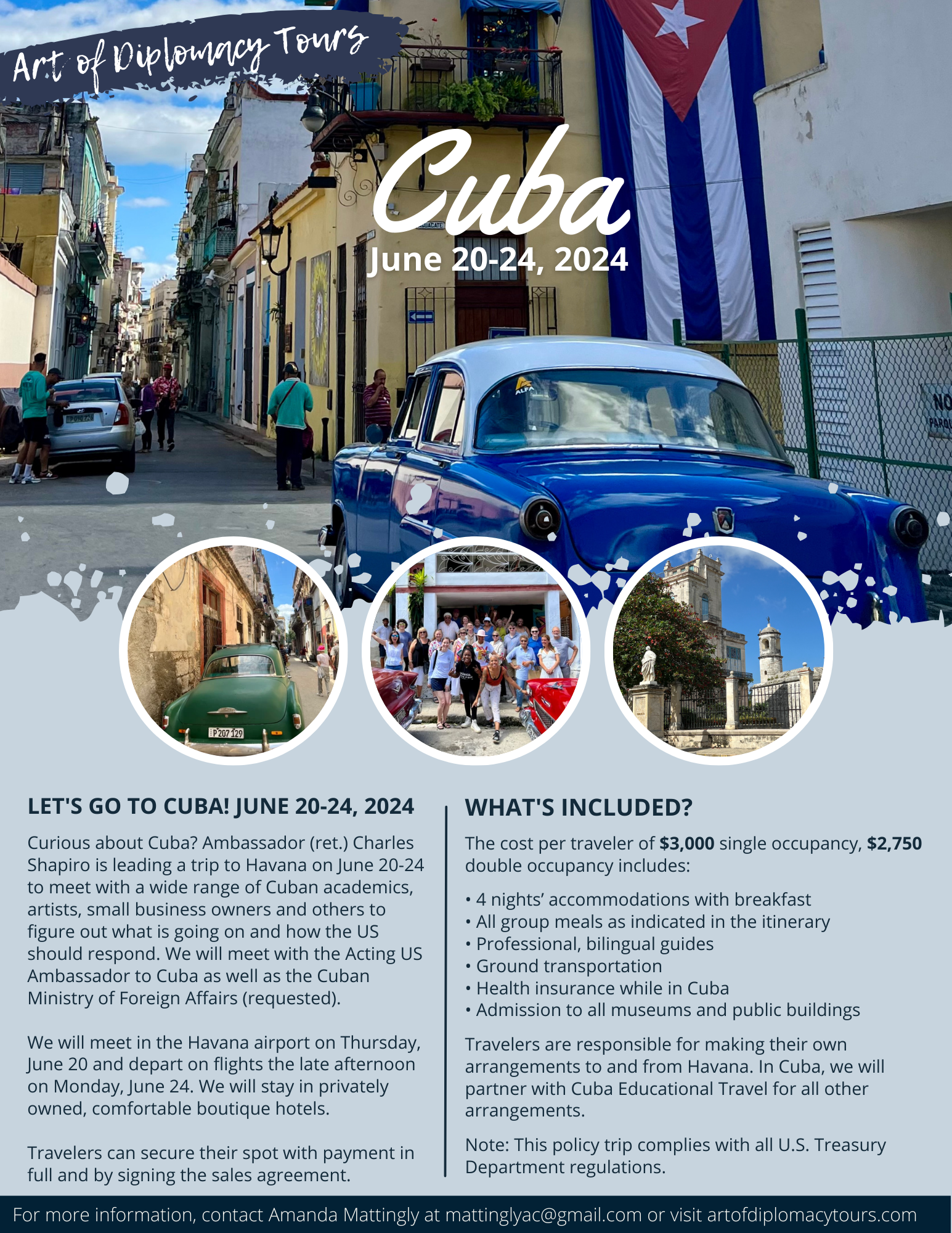 For more information or to sign up, email Amanda Mattingly or visit www.artofdiplomacytours.com