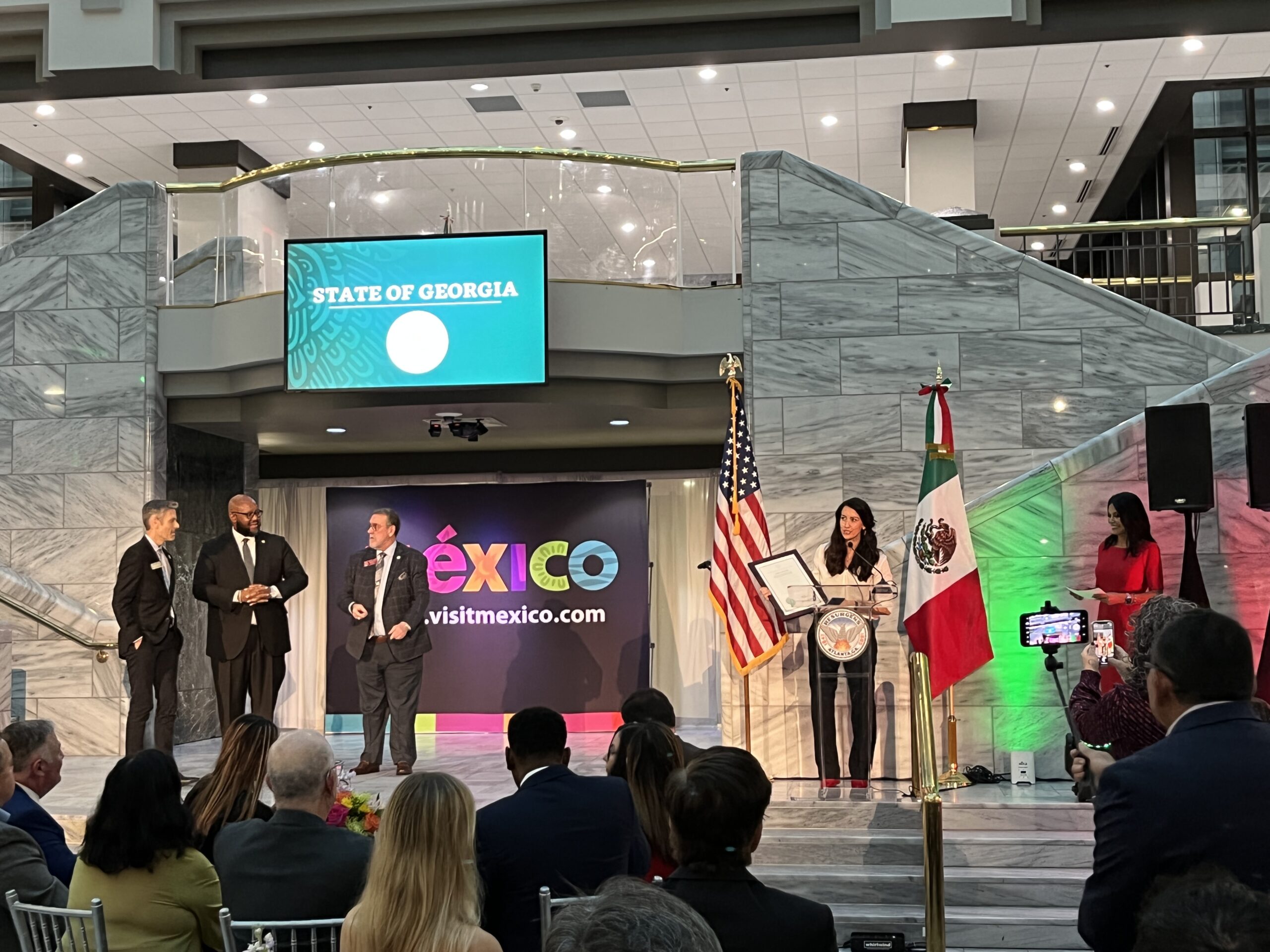 Along with praising his hosts at the Atlanta City Hall atrium for the city’s welcoming nature and increasing diversity, he honored trailblazing Mexican-Americans for their role in changing perceptions and empowering the community.